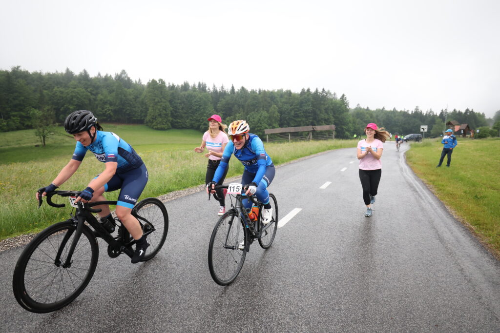 Slastni makaroni iz Simonine kuhinje Pr’ Ambružarju so teknili vsem, vsem pa se je tudi mudilo čim prej v dolino, ki je bila vremensko bolj prijazna do kolesarjev.