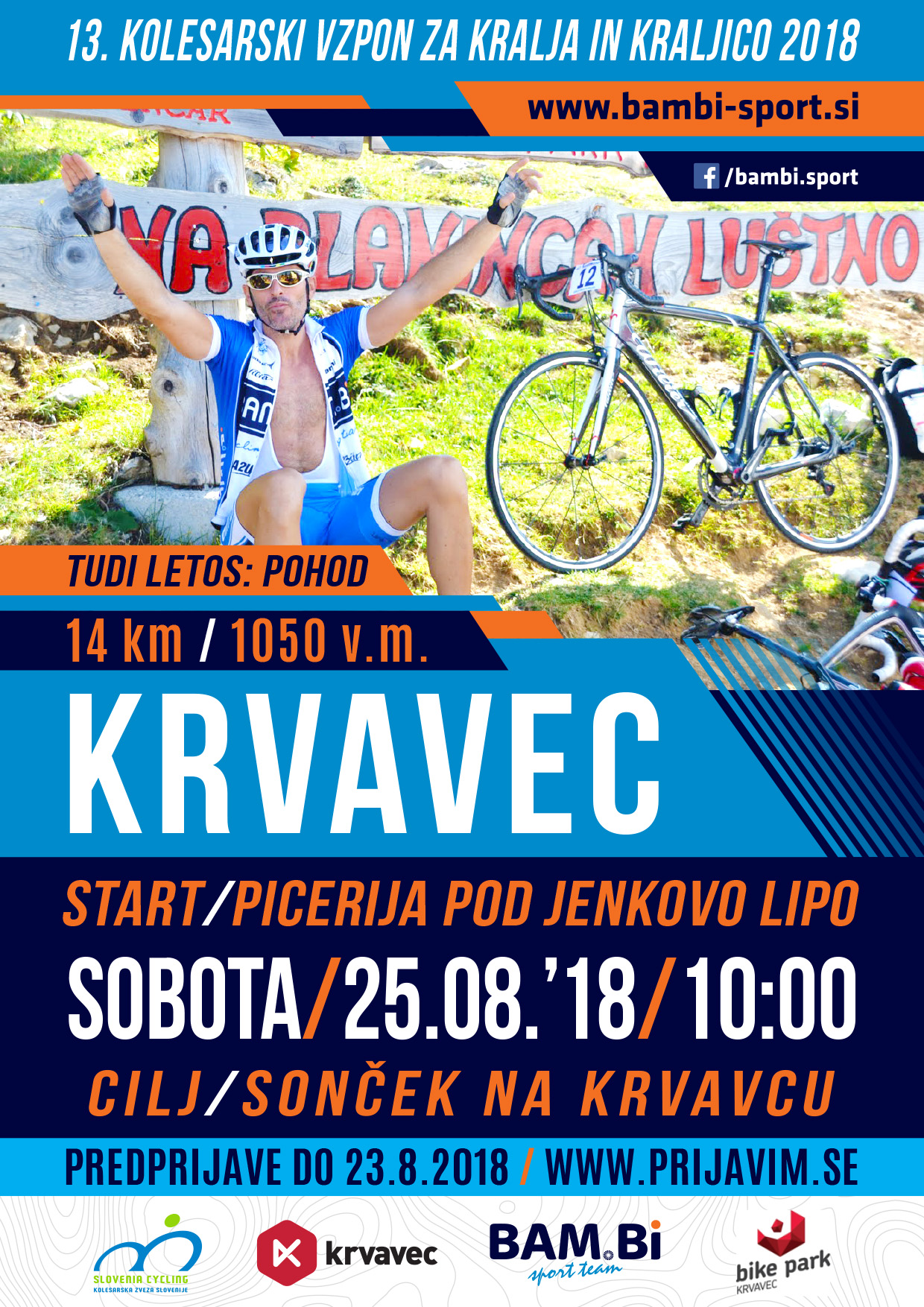 Letos prirejamo že 13. rekreativni vzpon na Krvavec, poleg katerega bo letos spet organiziran tudi pohod. Končni cilj, razglasitev in podelitev ter zaključek bo pri Sončku.