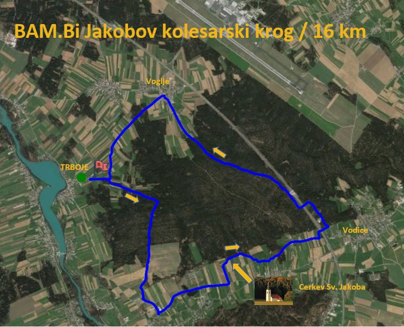 Označen pa je tudi kolesarski krog, ki vodi po makadamskih gozdnih poteh iz Trboje do cerkve Sv. Jakoba in nato ob obronku gozda vse do Vodic, kjer trasa zavije nazaj proti nadvozu Torovo, prečka avtocesto in po gozdnem odseku “zagleda dan” v Vogljah, ter zavije levo proti Trbojam. Dolga je dobrih 16 km, oglejte pa si jo na povezavi