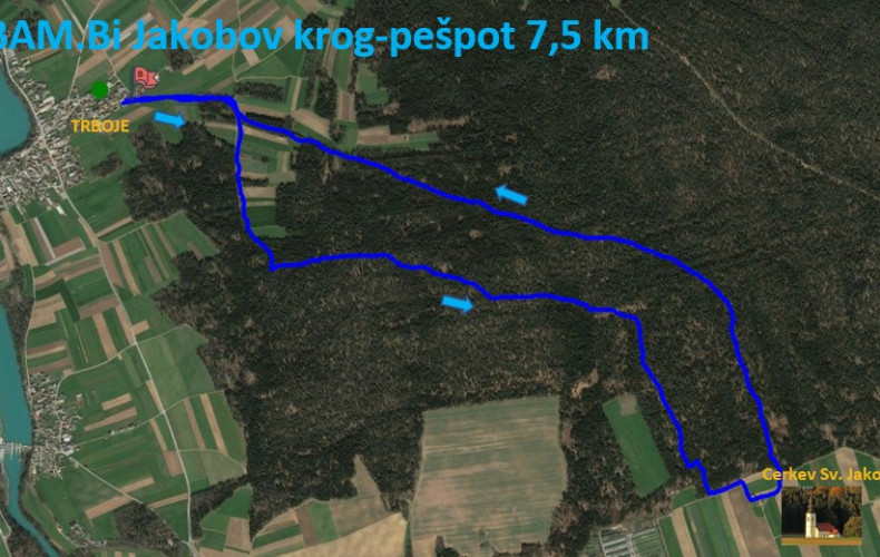 ŠD.BAM.Bi je po gozdnih poteh z izhodiščem v Trbojah pripravil zanimivo 8,3 km dolgo pešpot (če startate iz Trboj, sma kroga pa je dolg 7,5 km). Prvi del poti iz Trboj do cerkve Sv. Jakoba v Hrašah je začrtano in označeno povsem na novo (posebne markacije in modre puščice), drugi del poti od cerkve po gozdu v smeri Voklega gre po ustaljeni Jakobovi poti, zadnji del poti pa se pri Marijinem znamenju v gozdu zopet odcepi in pelje po makadamski poti do Trboj.